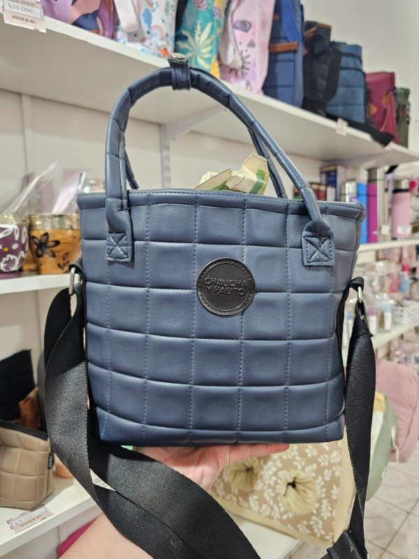 Matera tipo canasta de cuero sintético forrada en silver negro con faja portatermo anti derrame, con aislante que te da mayor estabilidad y rigidez al producto. Tiene base rígida, correas de mano y correa regulable de 1.40 cm.